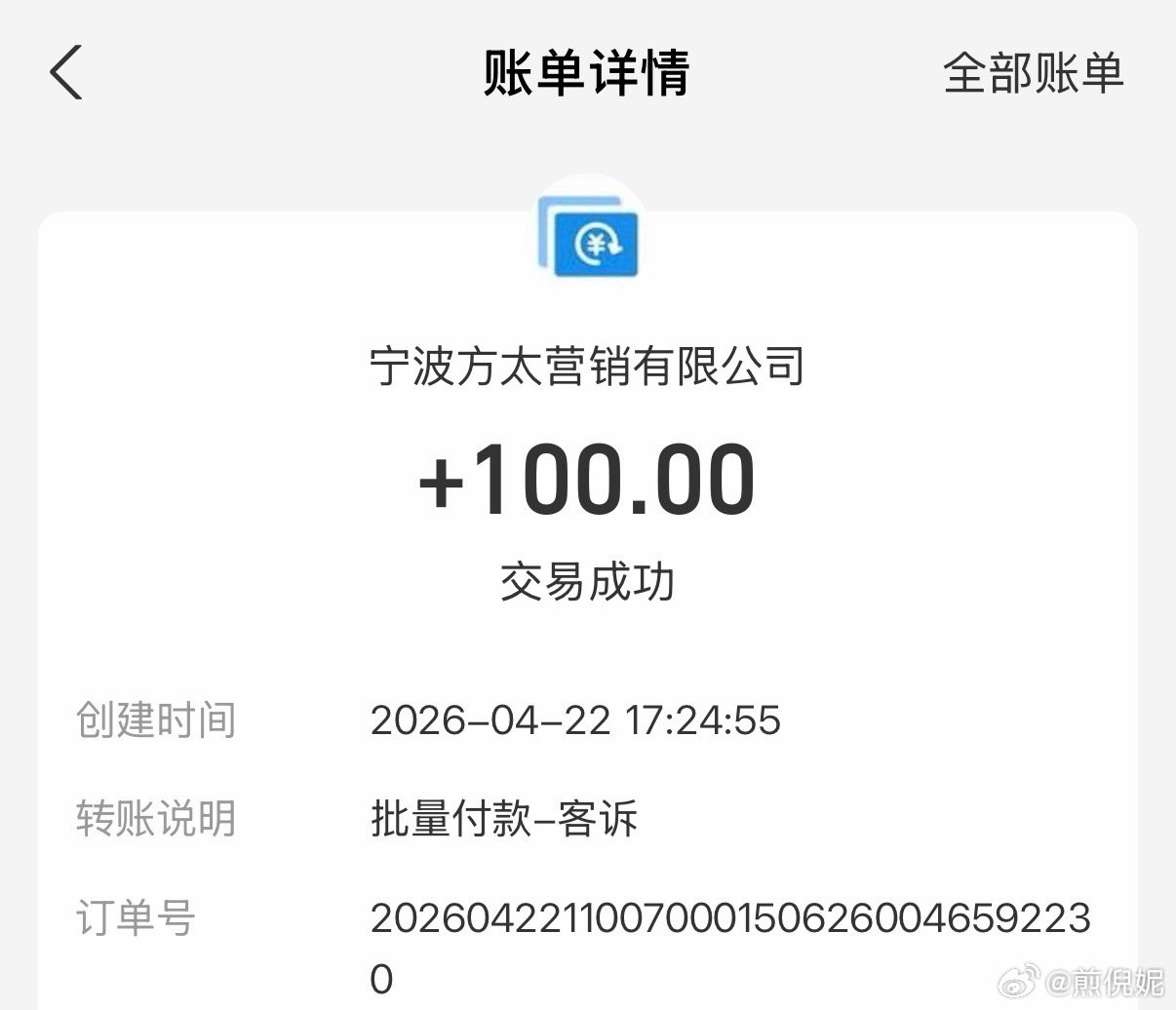 方太100到账了
