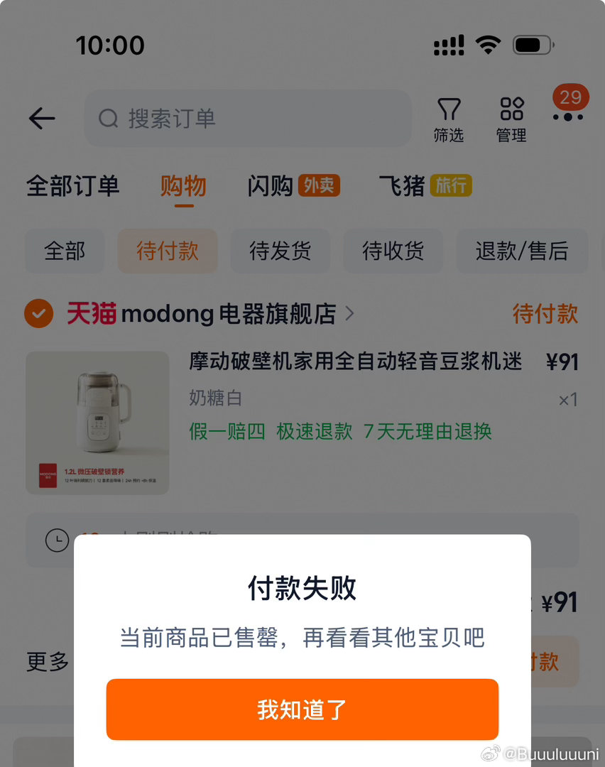 昨晚卡单豆浆机付不了款 谁知道怎么办