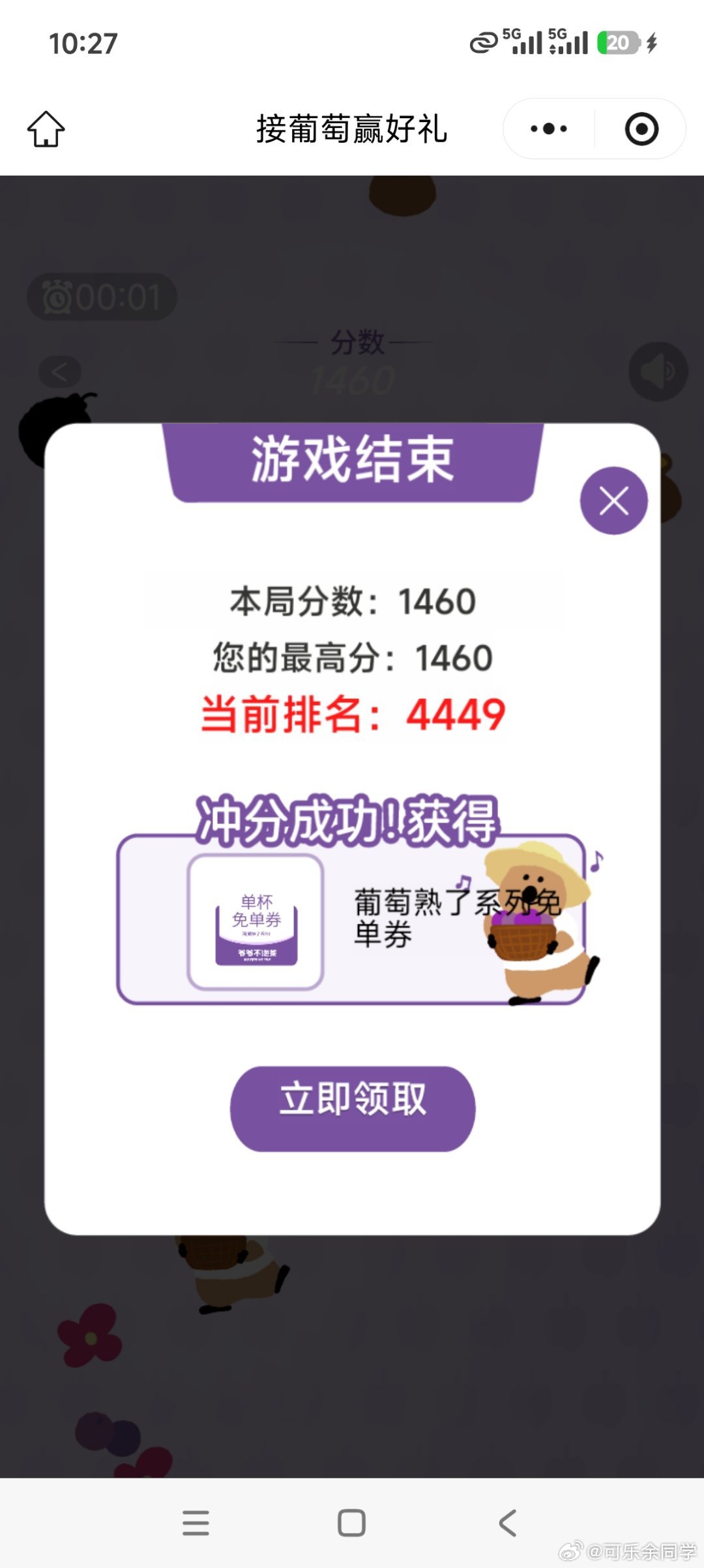 爷爷也有反馈 接葡萄抽4k兔箪 需要>10分以上哈 可以等水 只有一次机会抽 剩下要邀人哈 30号截...