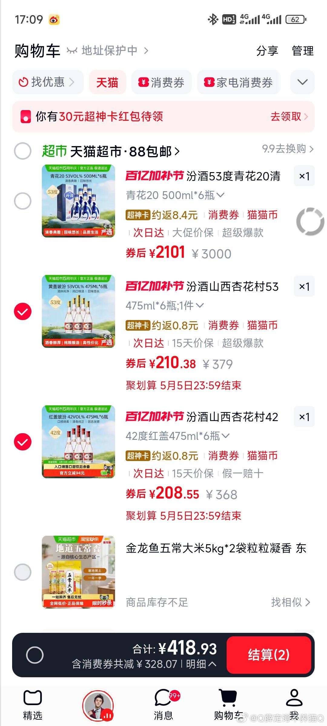 汾酒53度玻汾黄盖475ml*6瓶 用200-28食品加补券和200-25消费券 淘金币页面-足迹下...