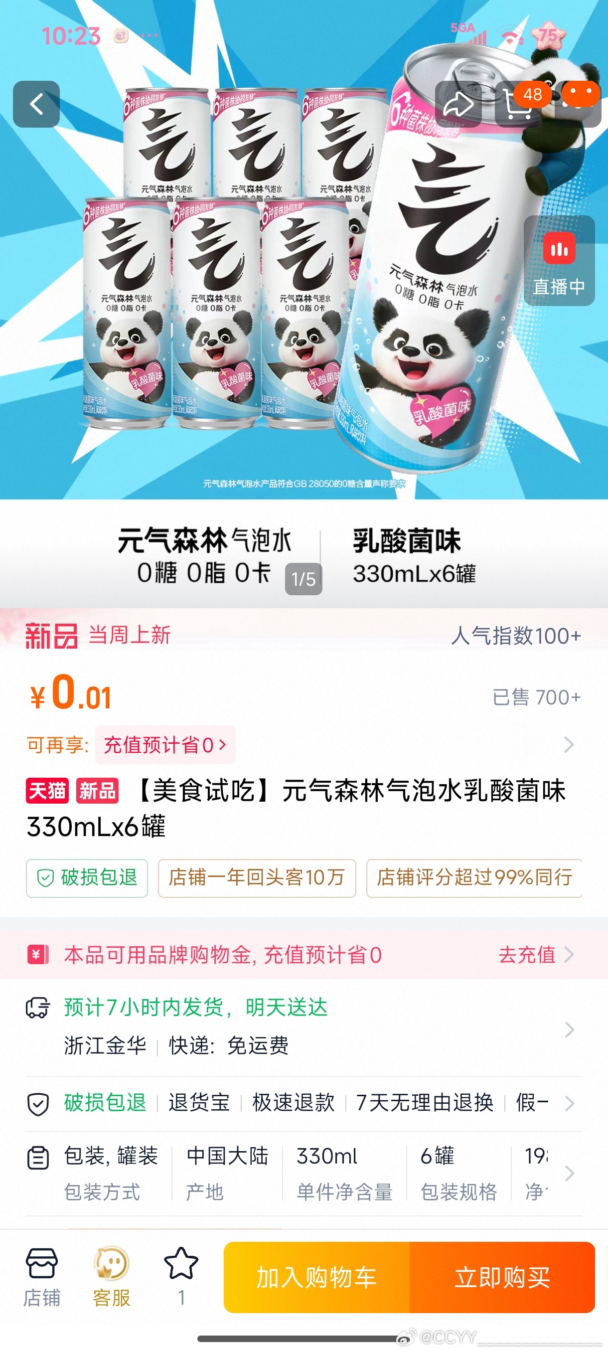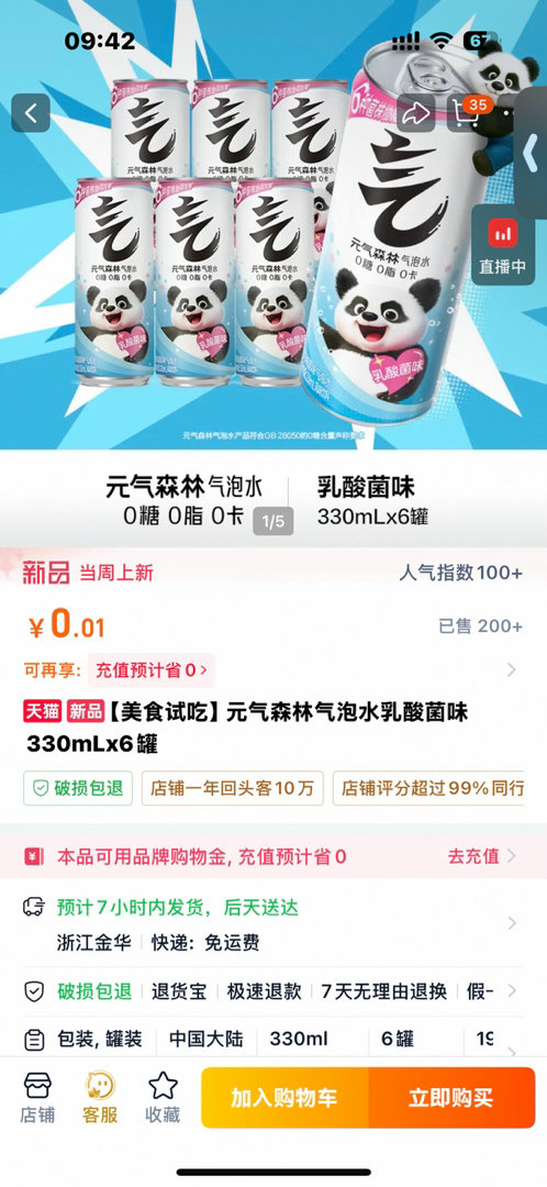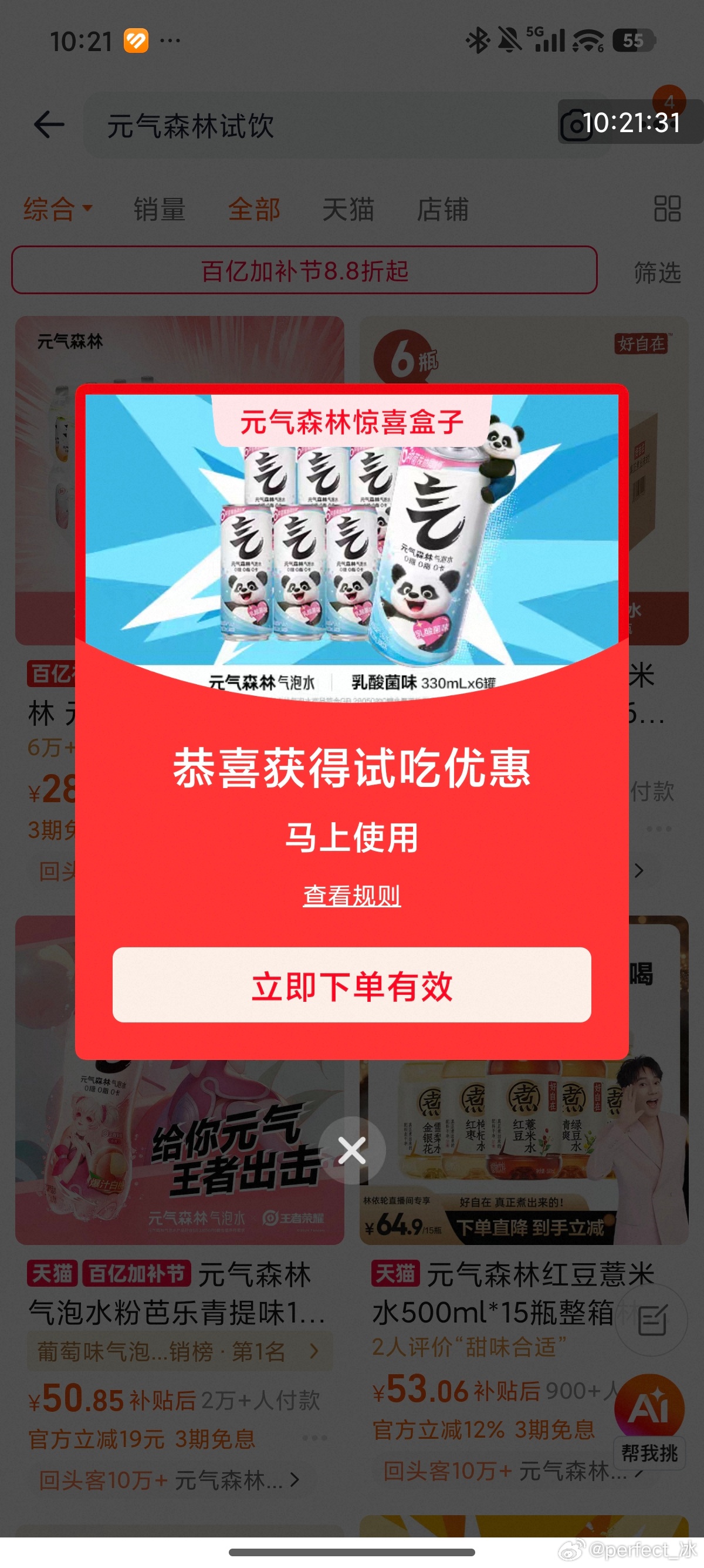 淘宝搜:元气森林试饮