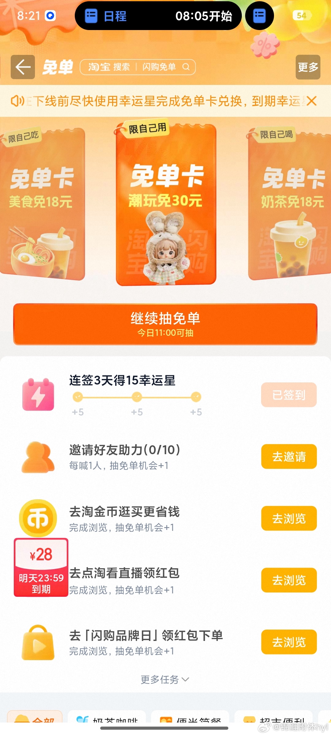 不是5/20号才下线吗?我tb昨天换完18免单后今天就签到也不加星了,无进度条了