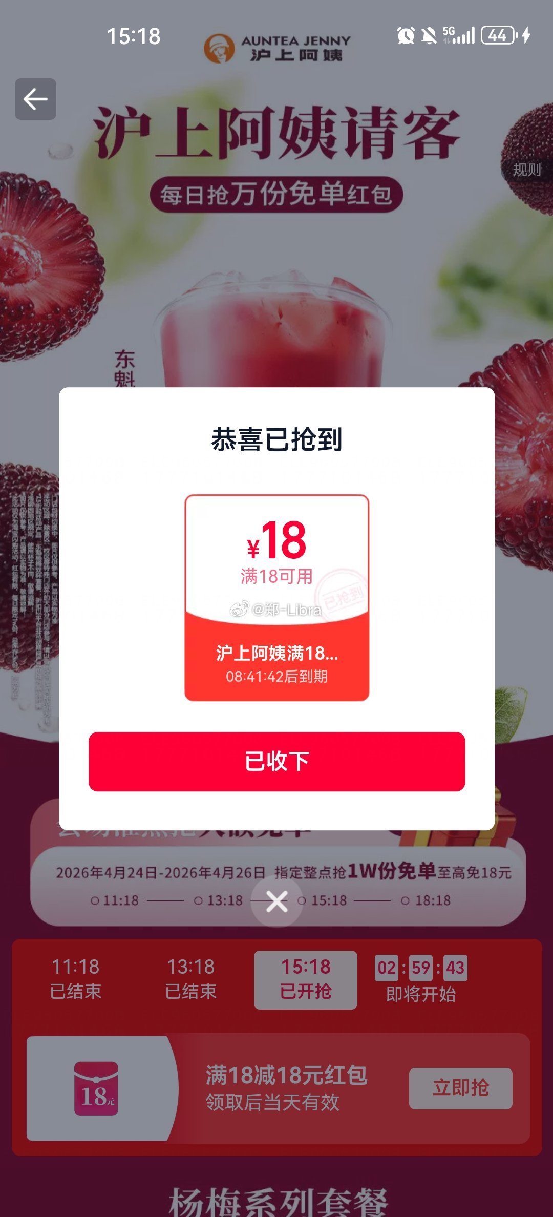 参与沪上兔单 记得领商家卷 美团【沪上阿姨】随机刚需‼ ⏰14~18点 每整点2000名 最高18亓...