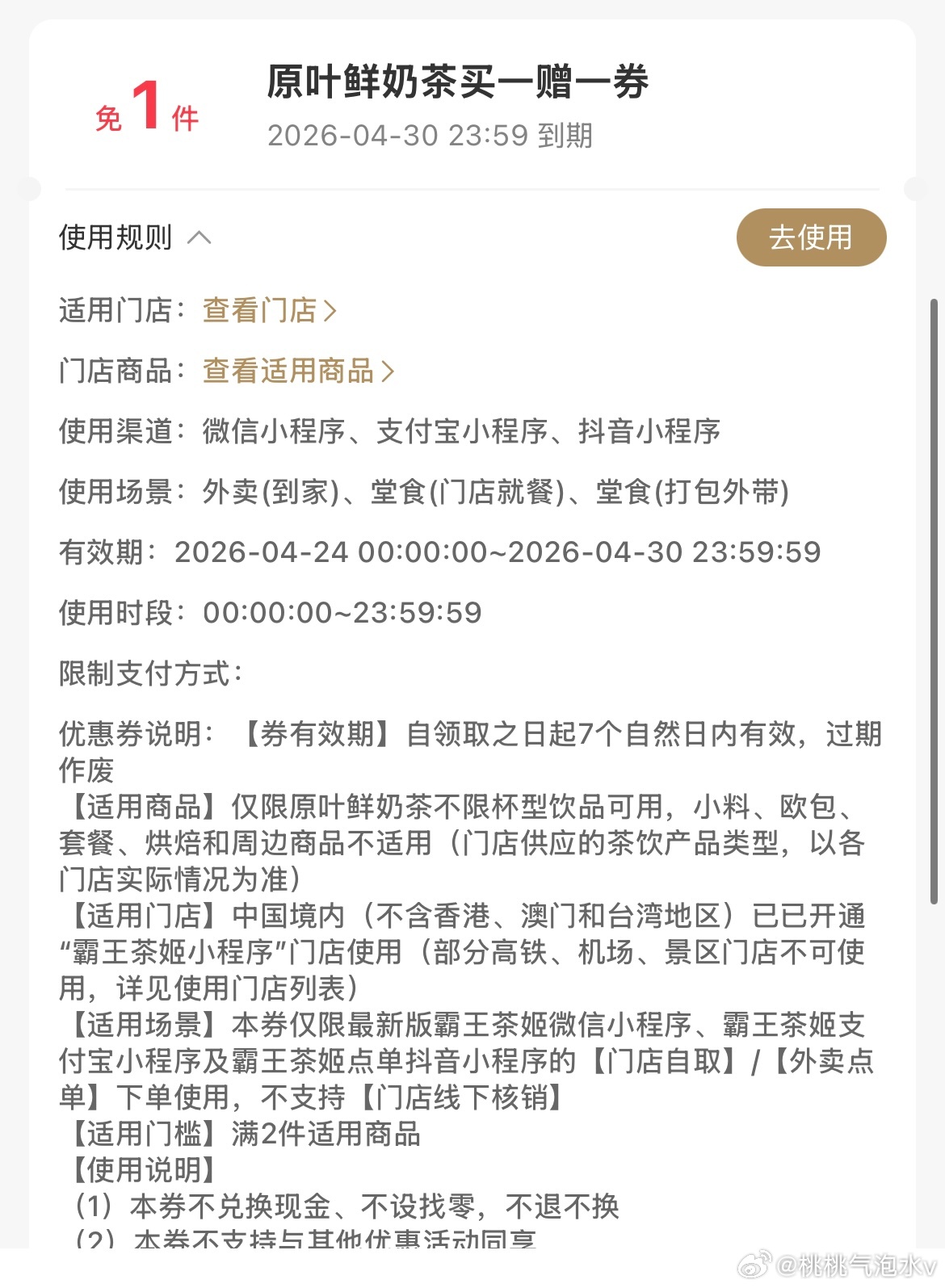 维他奶18-18可叠5神券 霸王茶姬买一送一 百分茶 开心果竹生干酪 换其他