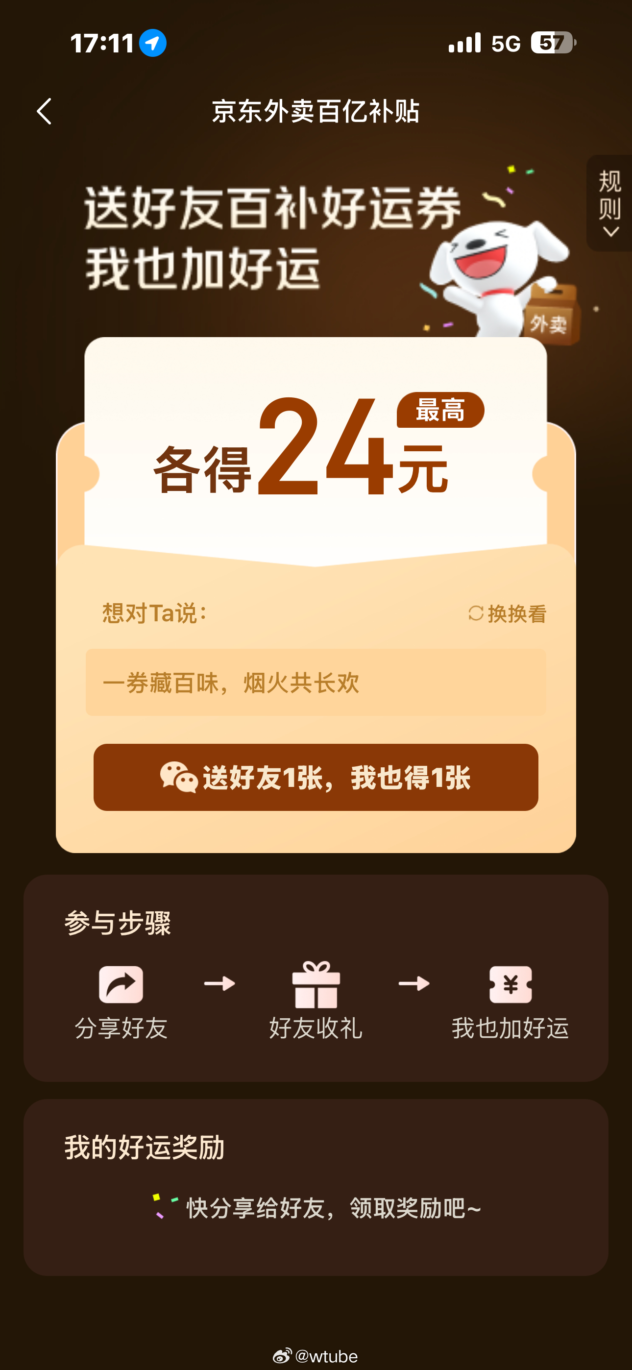 🐶东 京东外卖横幅 6-5券叠加券还能分享领...