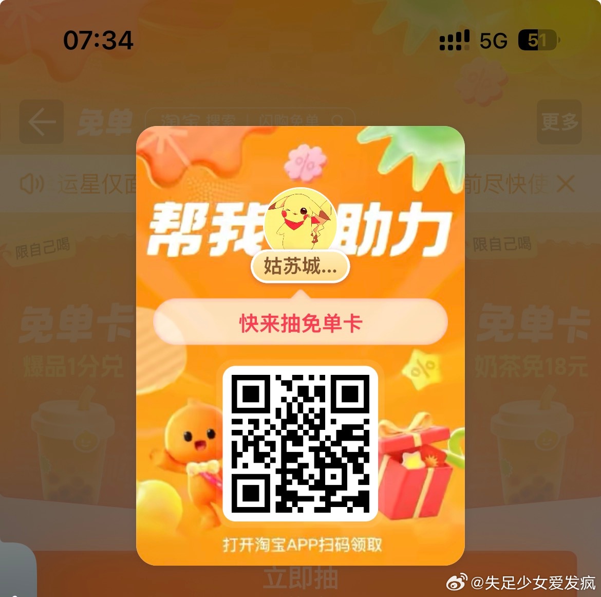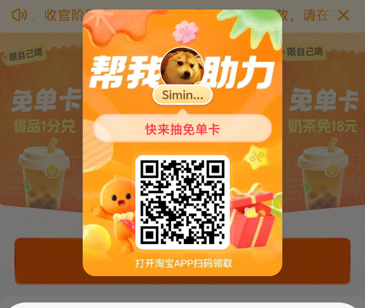 淘 饿 支助力抽