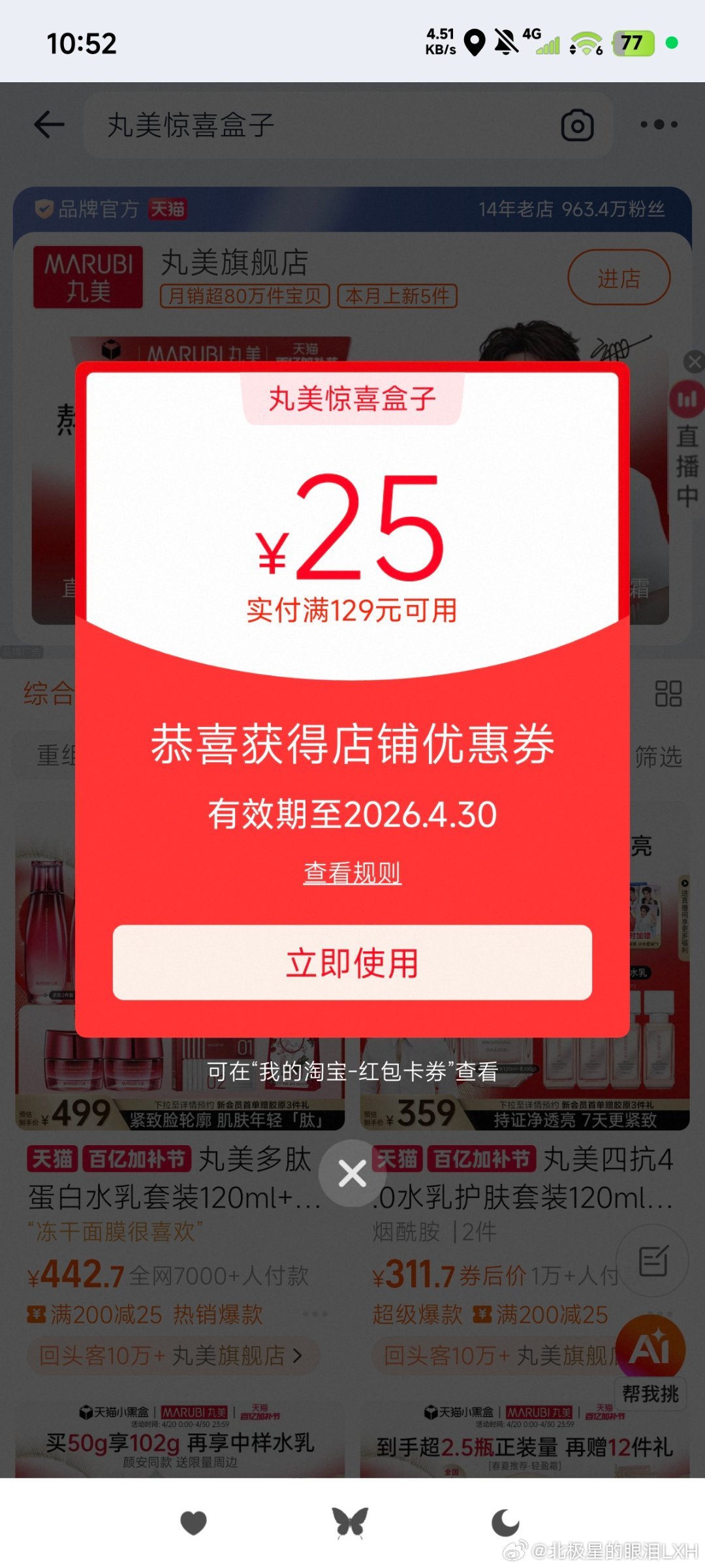 淘宝搜:丸美惊喜盒子 - ⏰11点 茶百道 抢667张兔箪 答案大写【A】 🔗mp://vglVrw...
