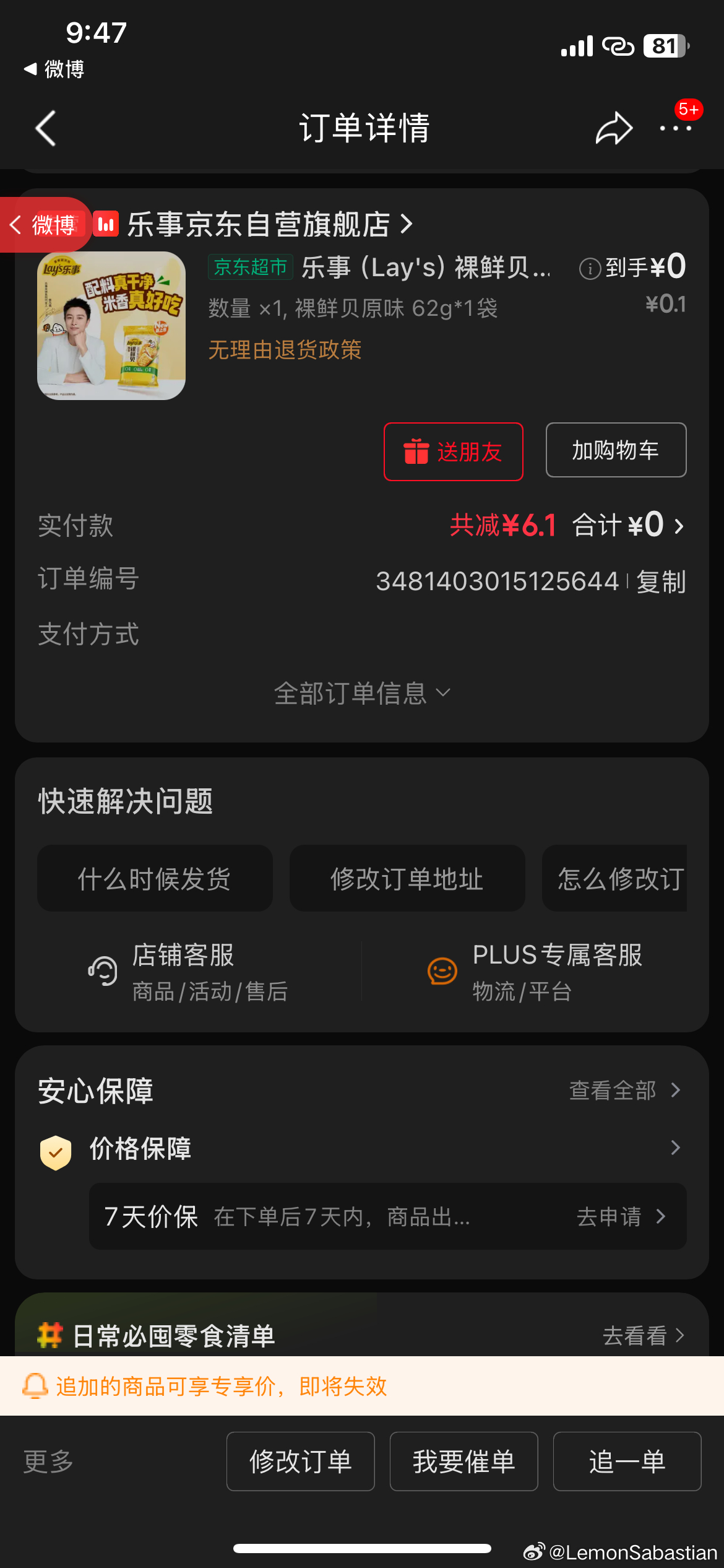 🐶东 乐事地区价还有,或进店看看其他 乐事(Lay's)香芋片 醇香海盐黑椒味 60克...
