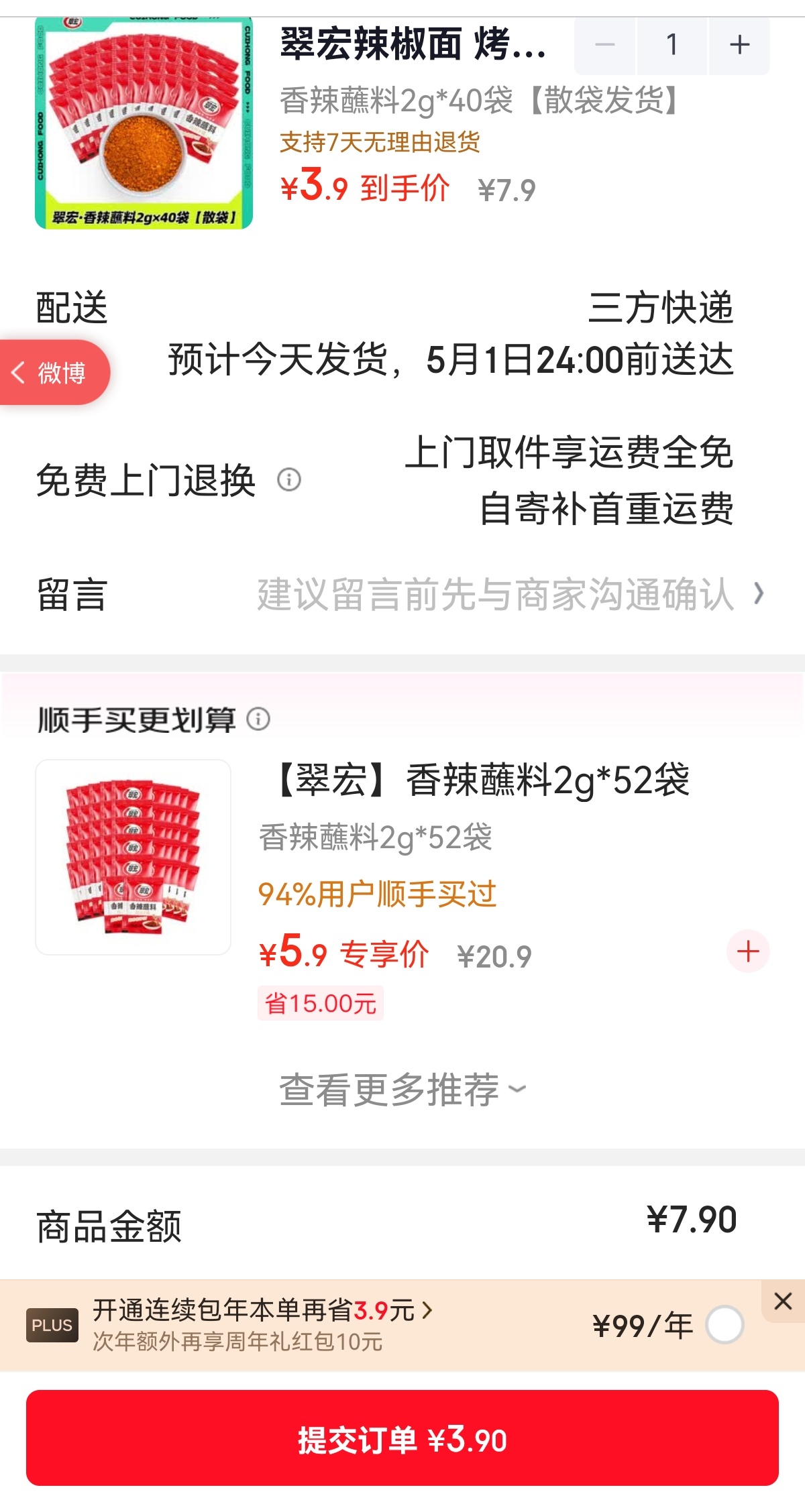 🐶东 app首页-9.9包邮频道-4.9-4粮油券 翠宏辣椒面 香辣蘸料2g*40袋,【3.9】...