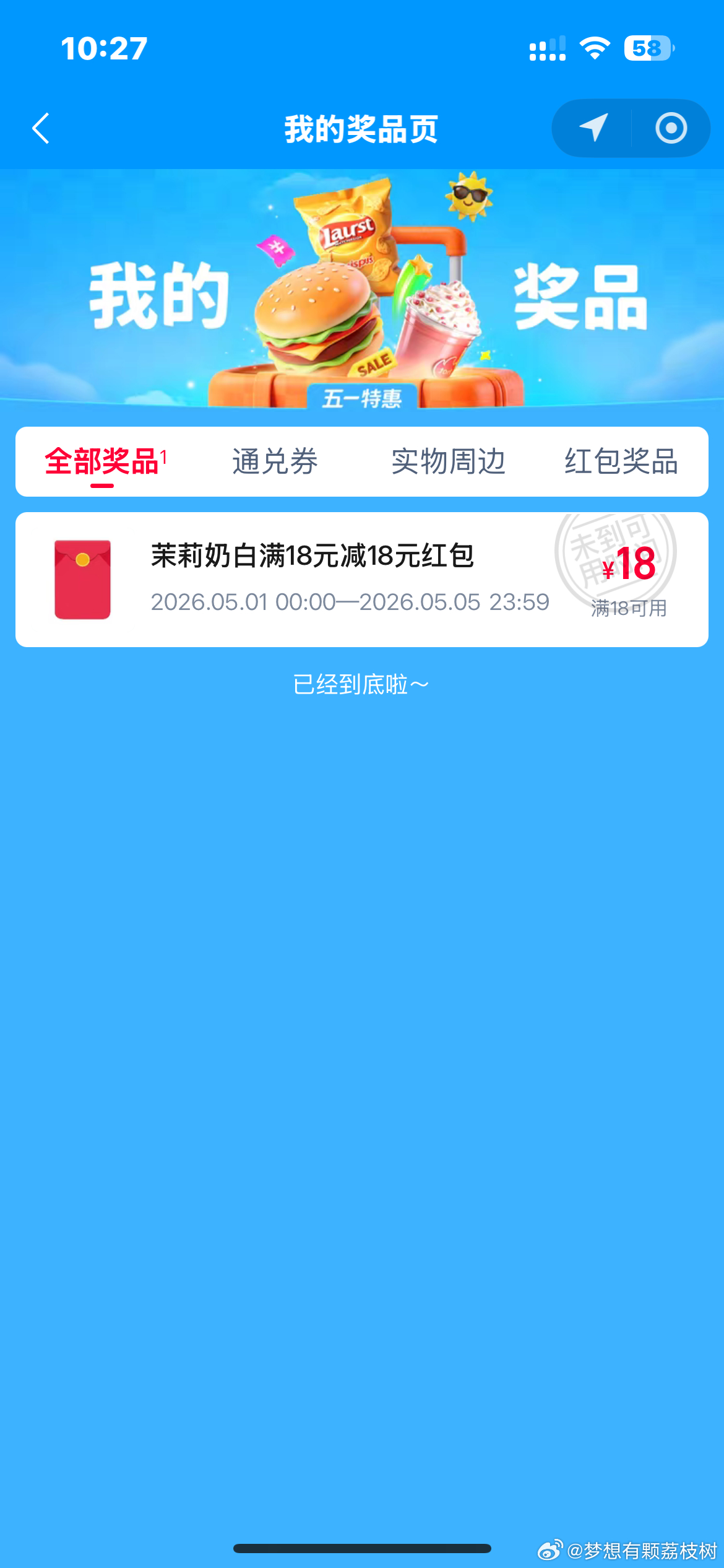 饿了么 五一抽18-18外卖券等 还有反馈 可以再抽下 #小程序://饿了么l外卖美食超市买菜水果/...