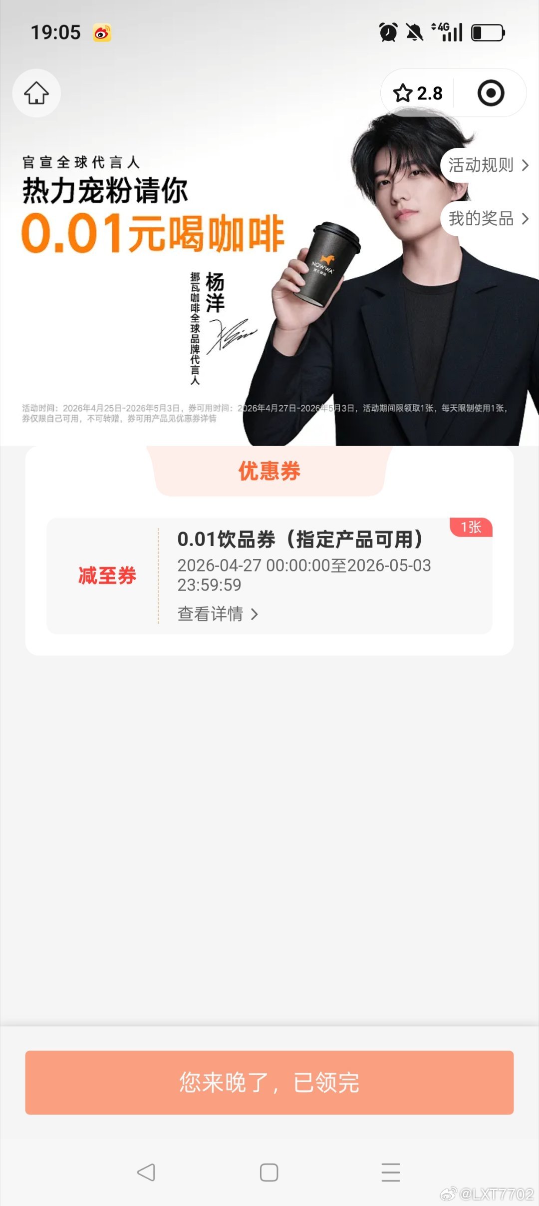 新的0.01挪瓦咖啡 手慢无