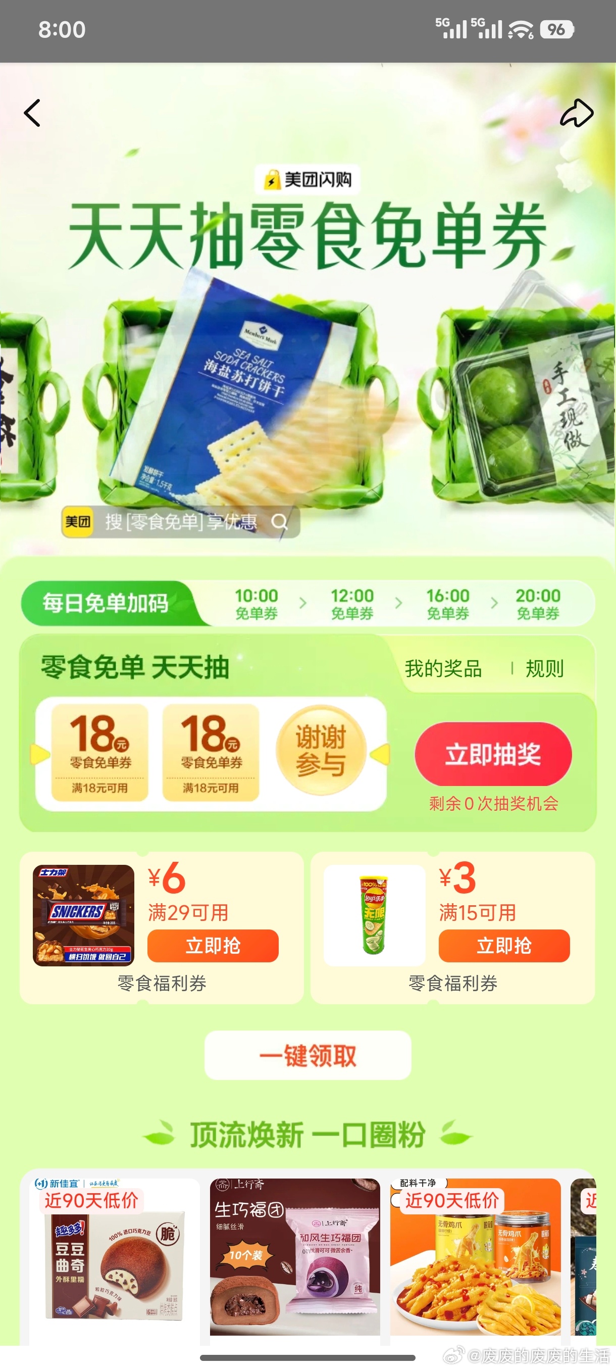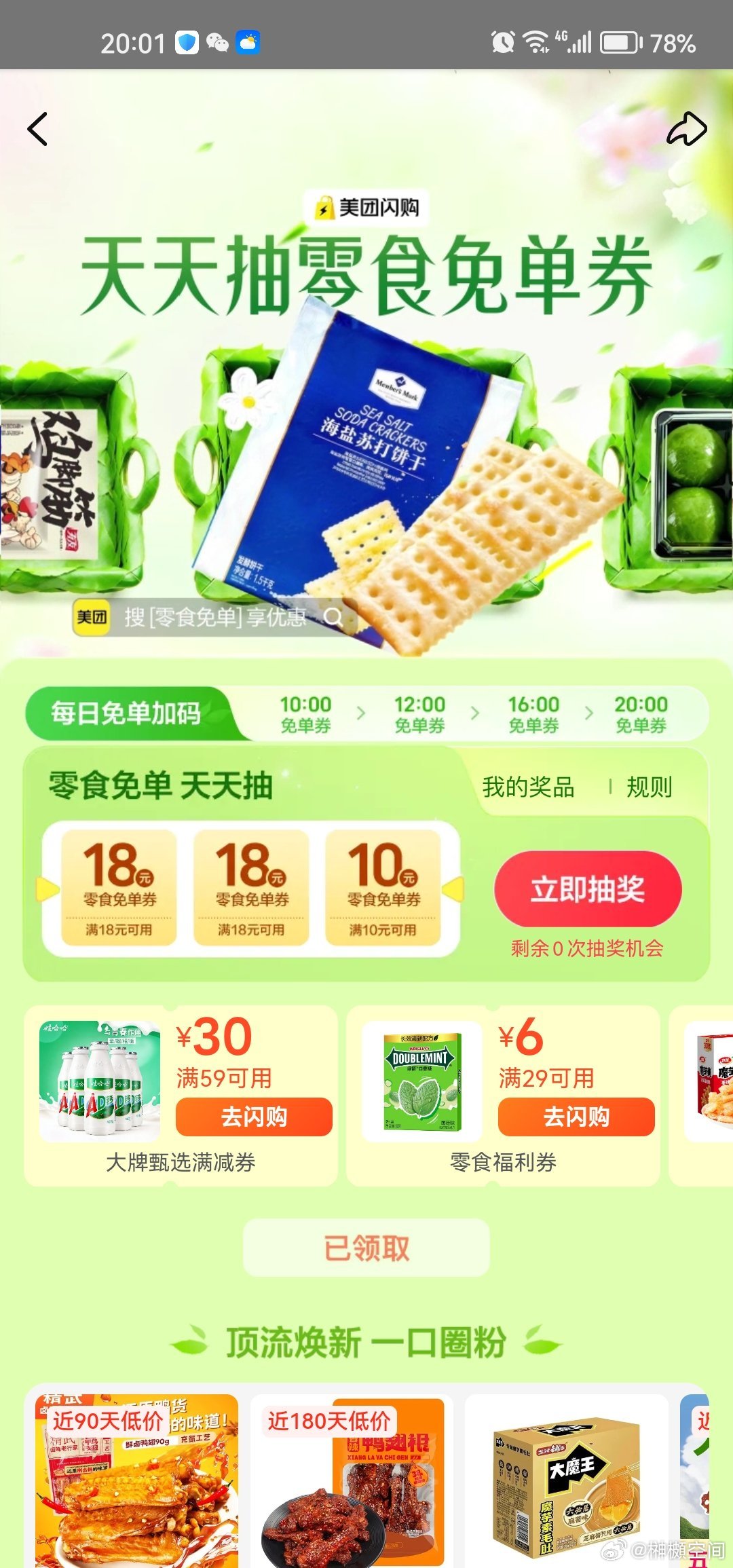 20点加码 卡点可抽18-18倦 软件不显示可以用小程序抽 ⭐美团搜【零食免 单】 【零食999】各...