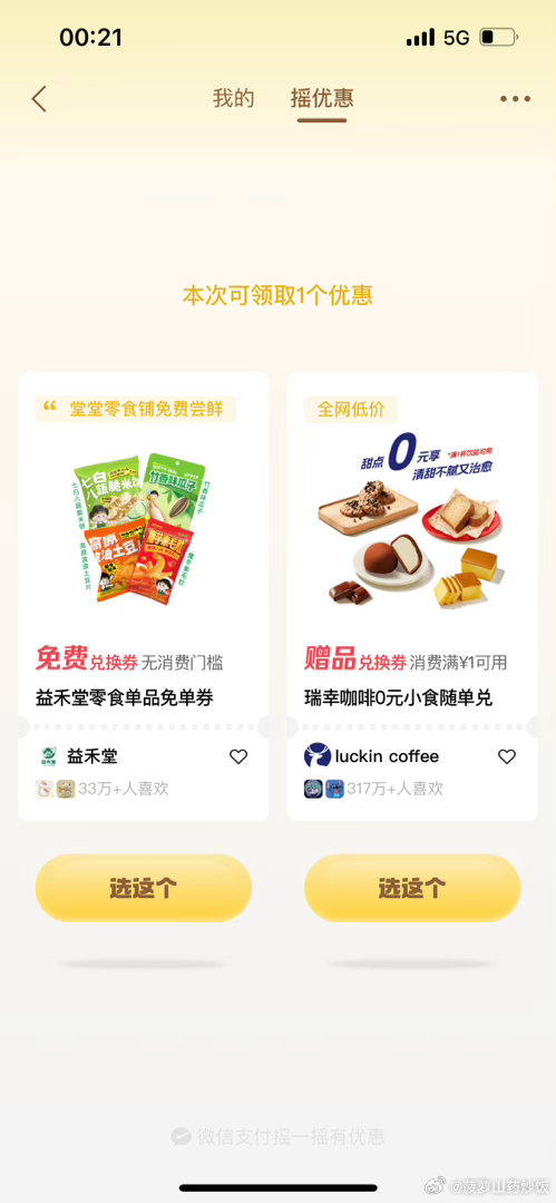 反馈益禾堂零食 摇不出的 顶部切「我的」周边商家优惠 部分能直接领 也有爷爷不泡茶等 = #摇优惠 ...