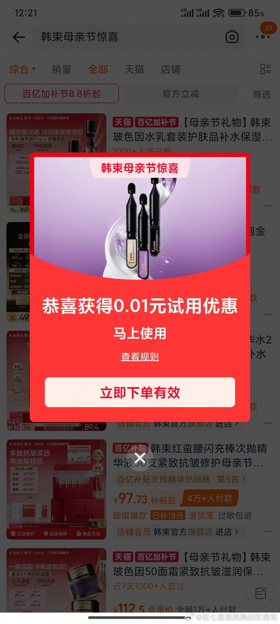 淘宝搜 韩束母亲节惊喜