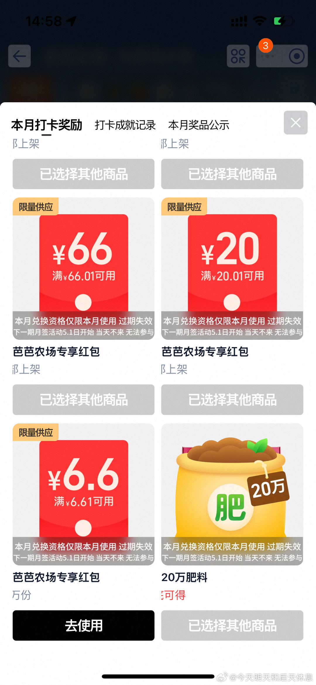 那个芭芭6.6今天竟然有补,我还以为只能领肥料了 刚领了个6.6