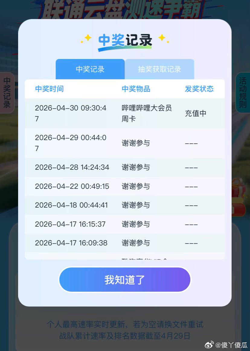 联通云盘 测速抽月咔试试 有反馈优酷月咔 三网都能参与 #小程序://联通云盘/iwyQNt3STB...