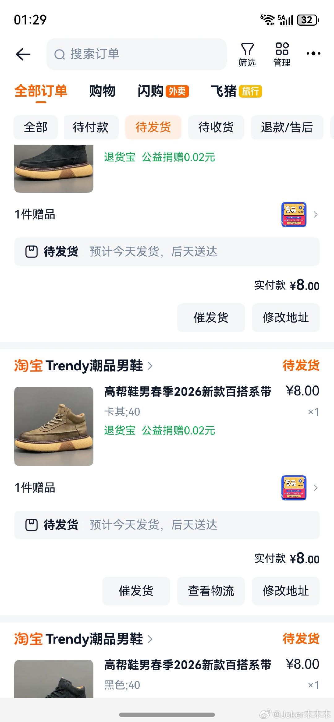 5双鞋会发货吗